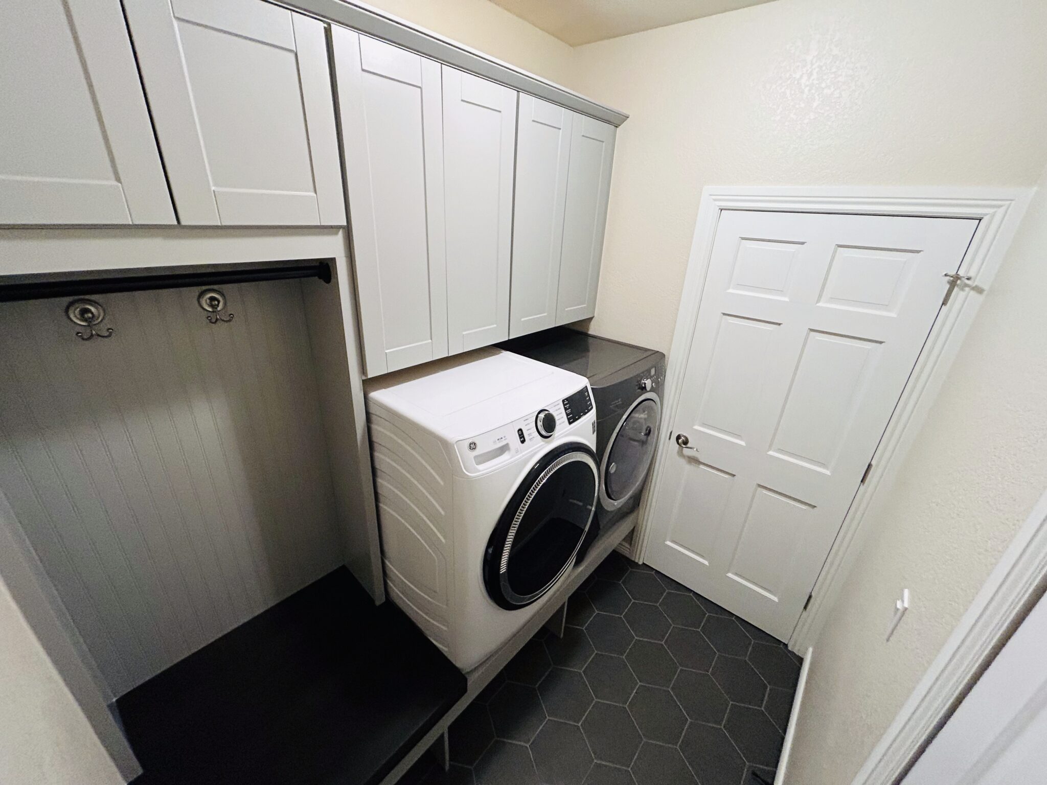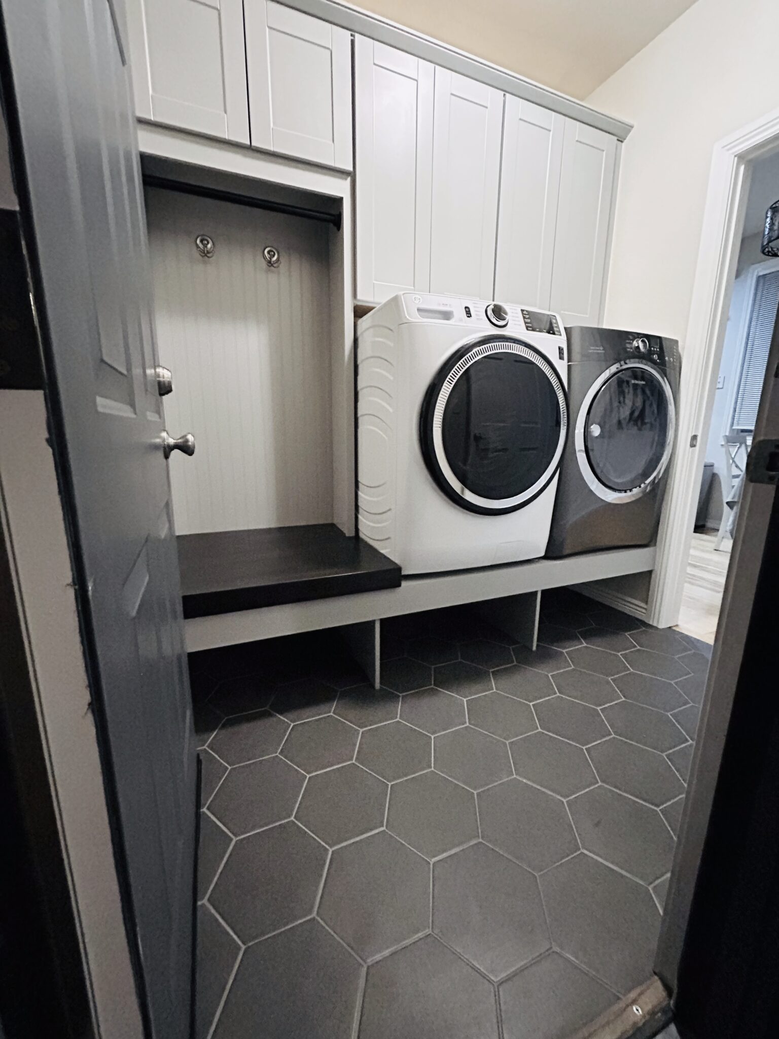 Serving as the main entrance for the family, the laundry room had become a cluttered, stressful space. Shoes piled up, coats draped over appliances, and every grocery trip turned into a game of “where do we put this?” With the upcoming holiday, they wanted their home to feel open, organized, and welcoming—not cramped and chaotic.